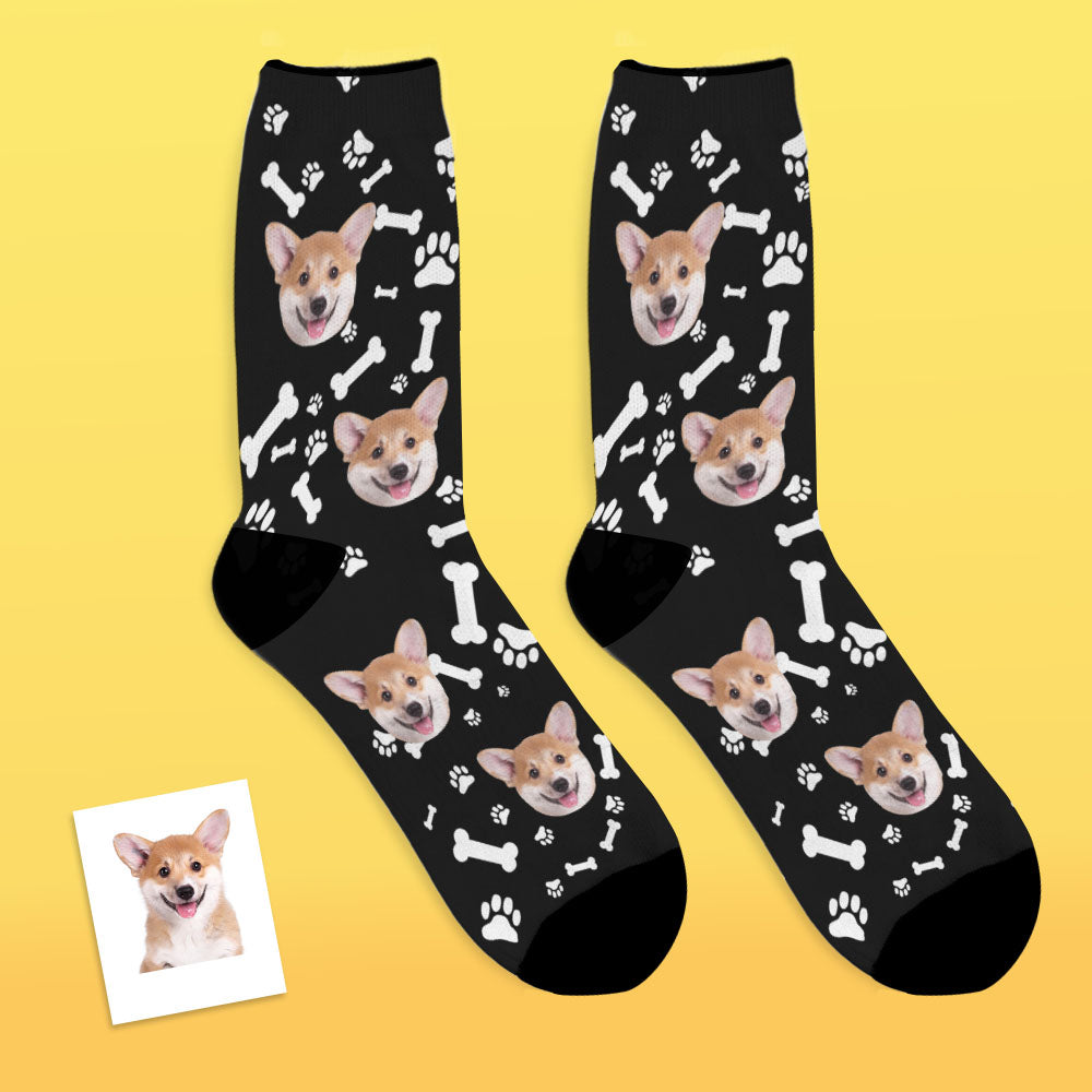 Custom Christmas Grey Breathable Face Socks Personalized Dog Photo Soft Socks Gifts For Pet Lover