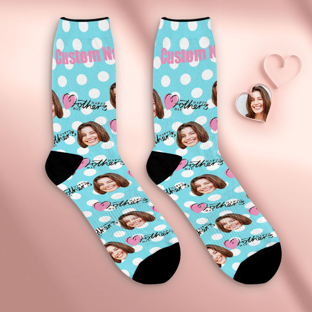 Custom Breathable Face Socks Personalized Soft Spotty Socks Gifts For Mom Happy Mother's Day