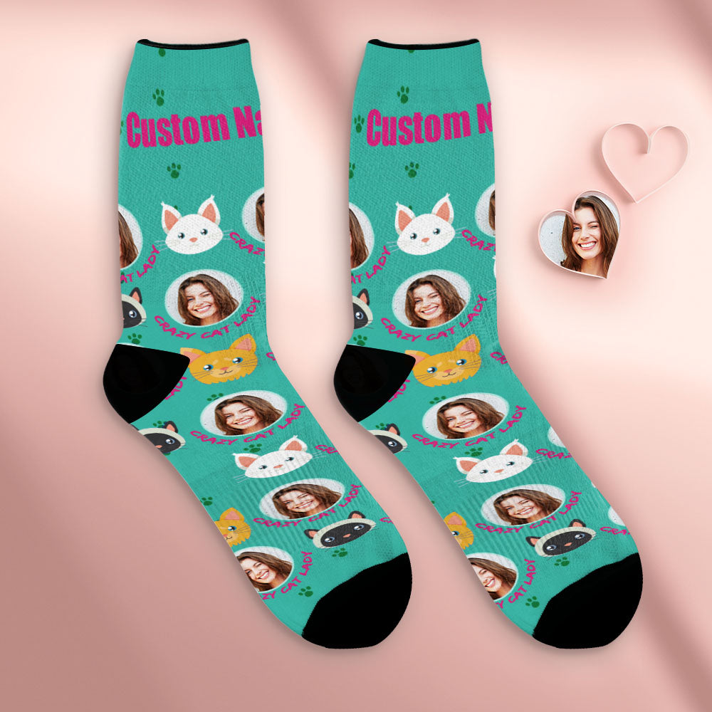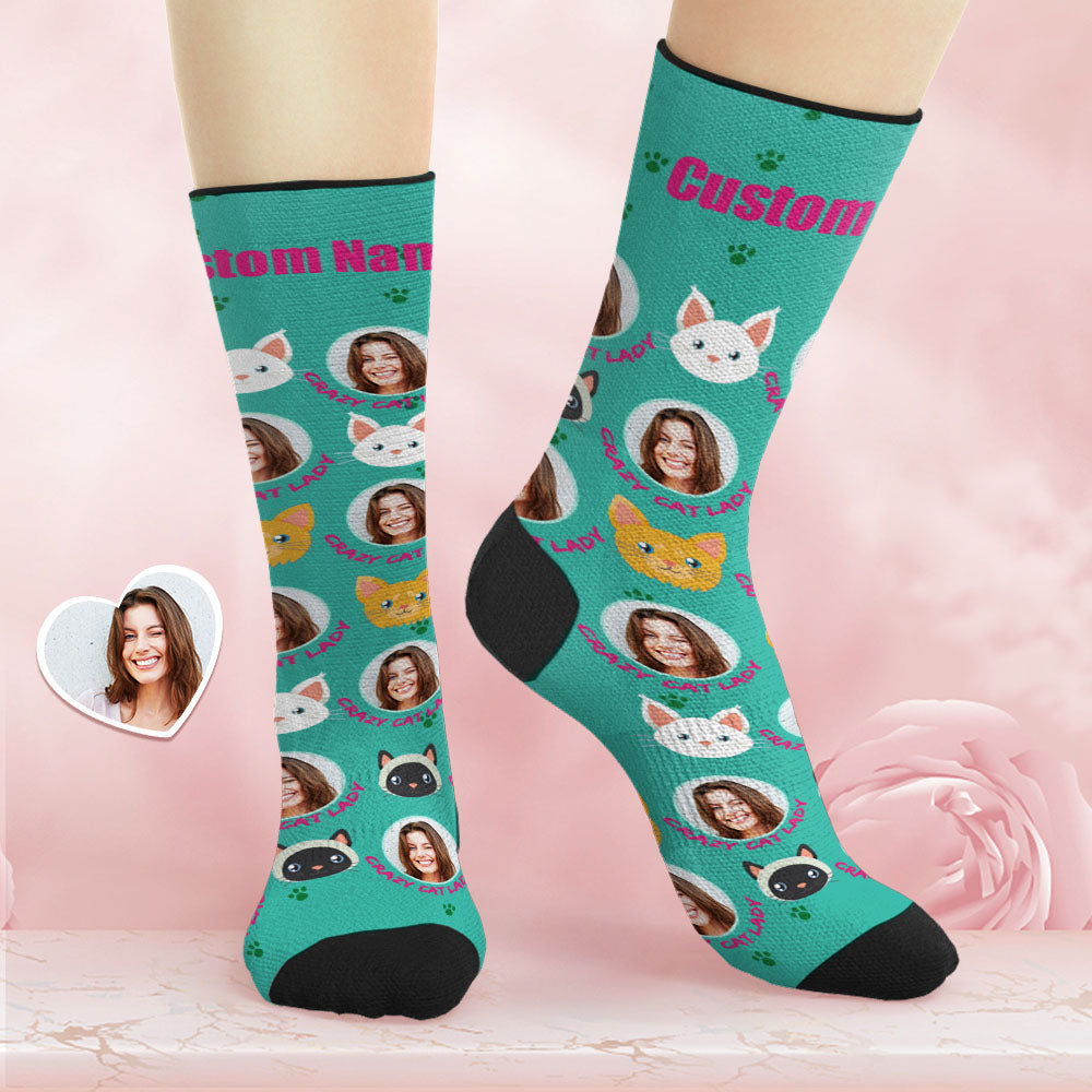 Custom Breathable Face Socks Personalized Soft Socks Mother's Day Gifts Crazy Cat Lady