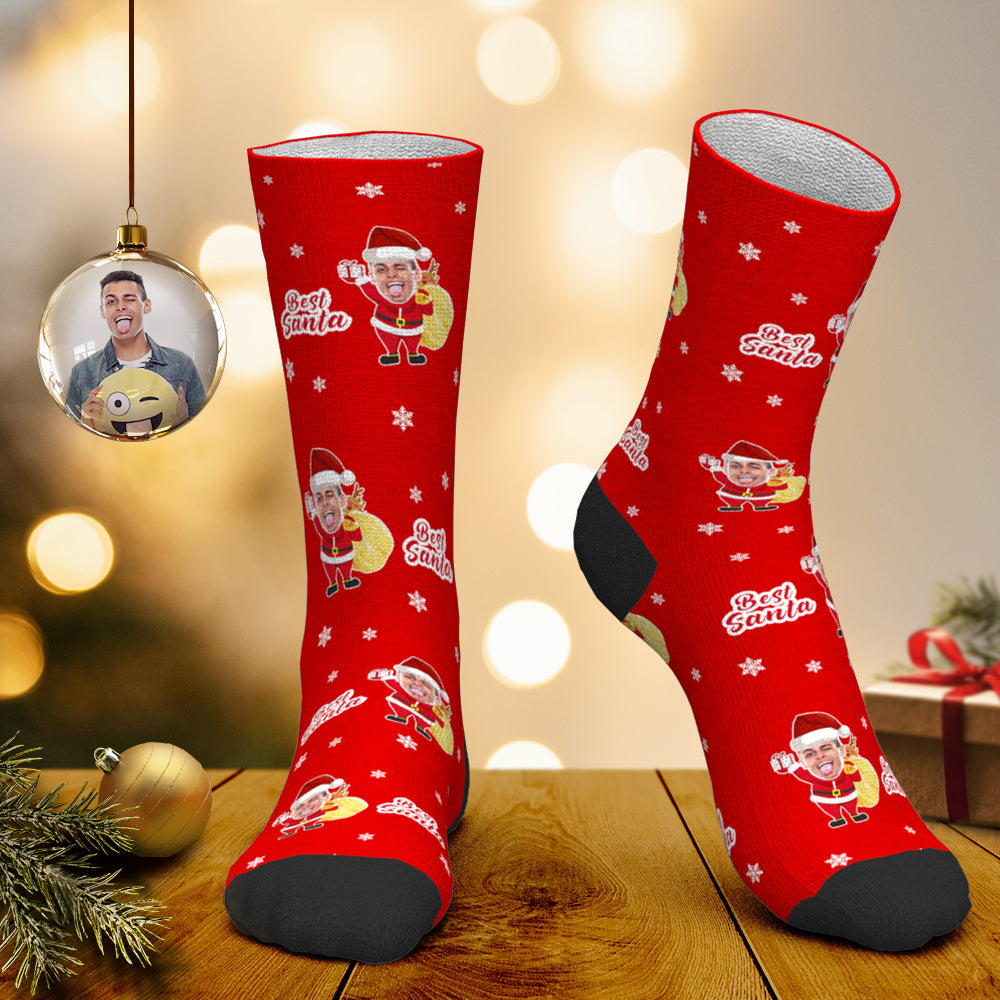 Custom Face Socks Personalized Photo Socks Santa Socks Christmas Gift for family - Best Santa