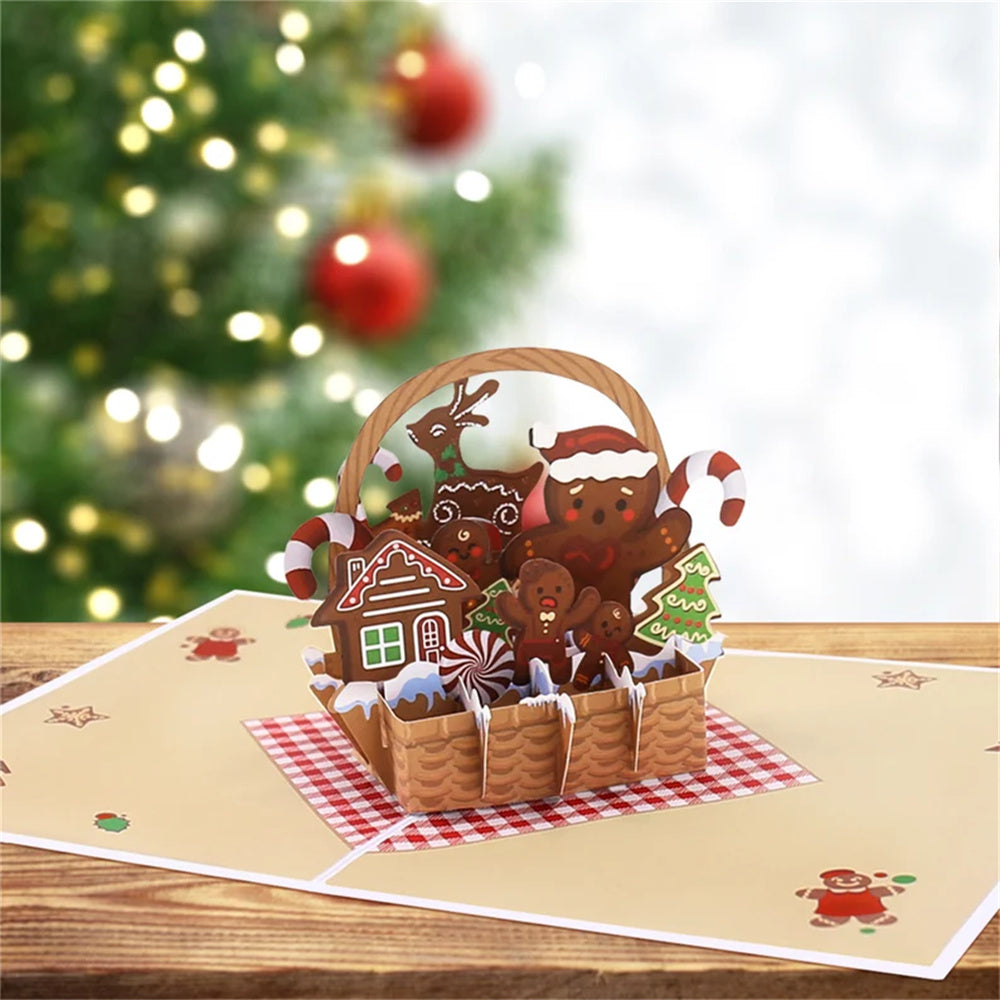 Christmas 3D Pop Up Card Christmas Gingerbread Basket Greeting Card