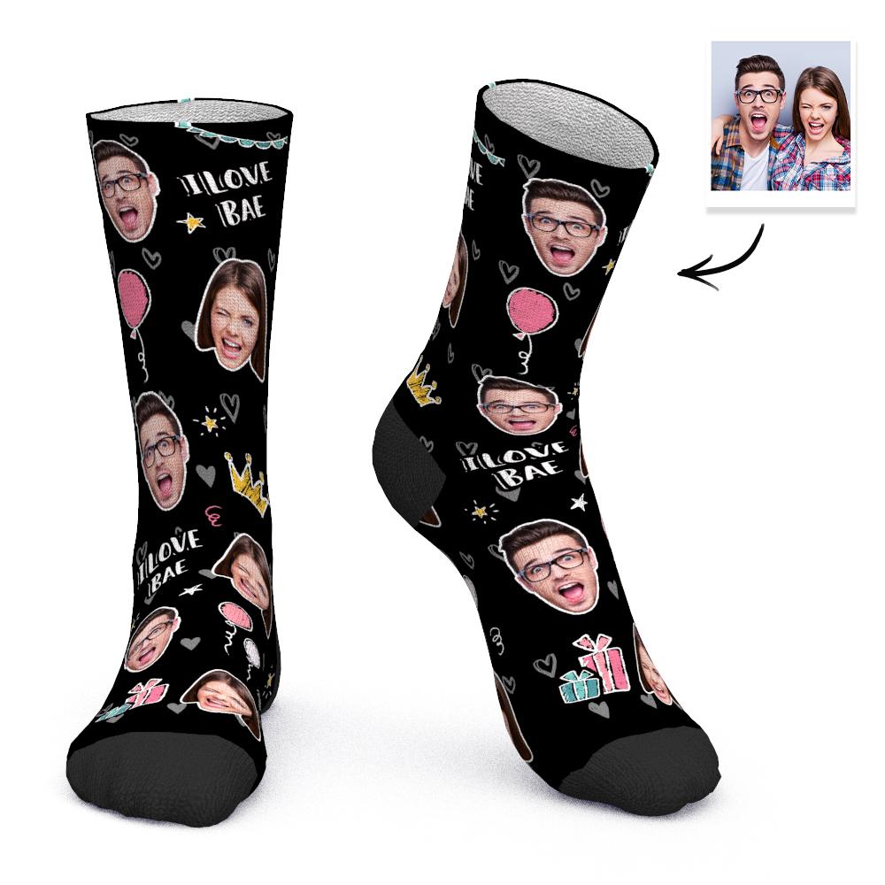 Custom Face Socks Personalized Gifts - I LOVE BAE