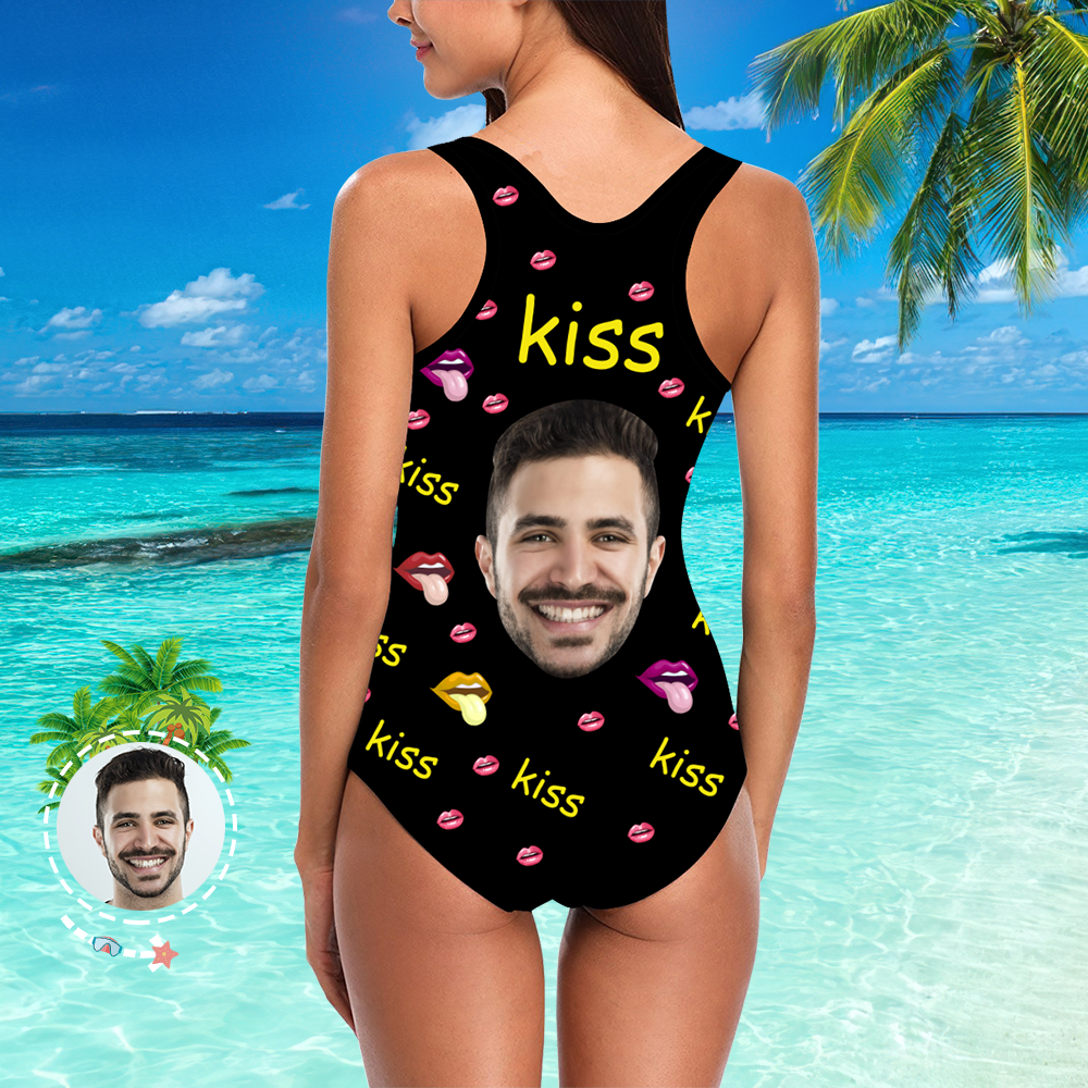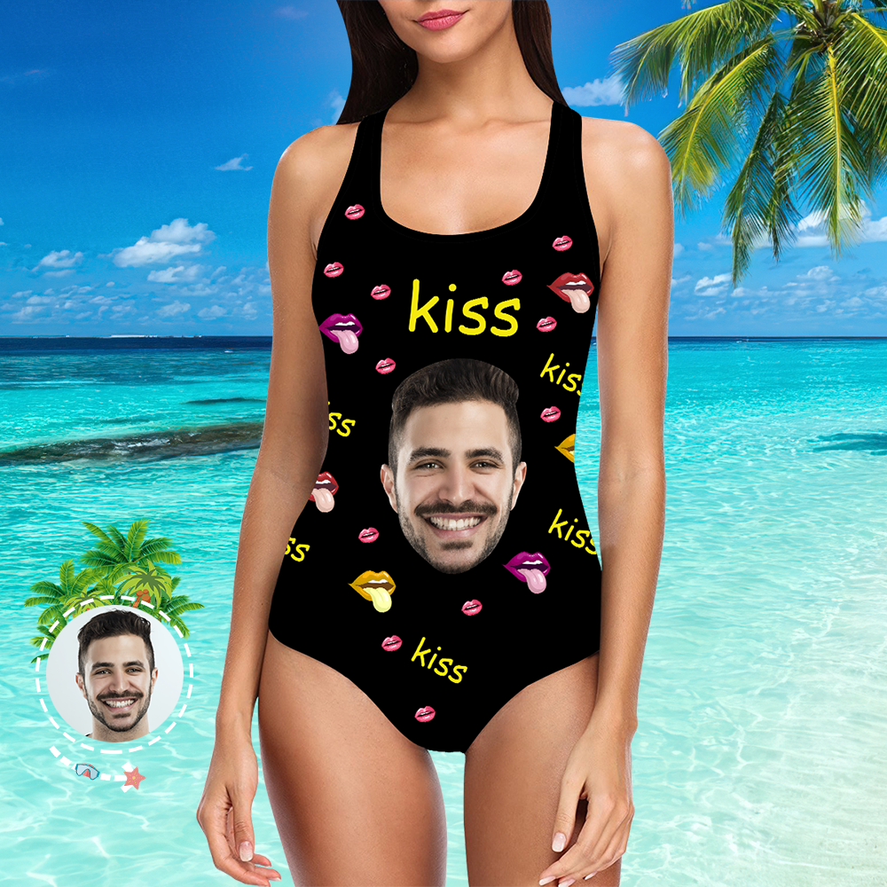 Custom Face Photo Women's One Piece Sexy Swimsuit Kiss Mouth Summer Clothes