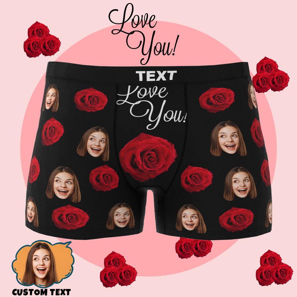 Personalized Boxers with Face Custom Boxers Briefs for Men-ROSE-LOVE YOU