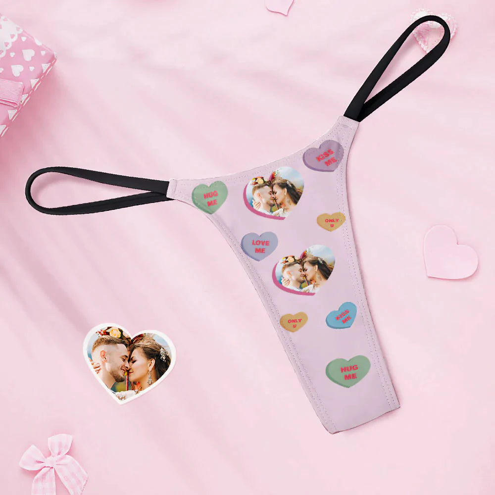Custom Face Women's Tanga Thong Conversation Hearts Personalized Valentine's Day Thongs