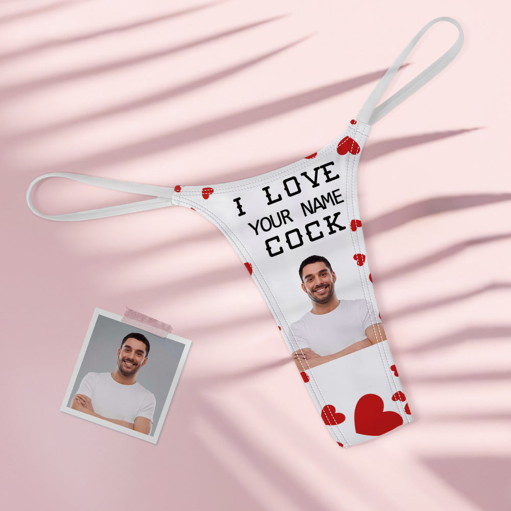 Custom Face Women's Colorful Tanga Thong Valentine's Day Gift I Love Your Cock