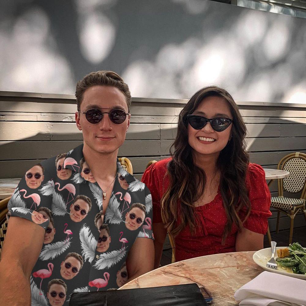 Custom Face Men's Tropical Summer Hawaiian Shirt Flamingo And Feather