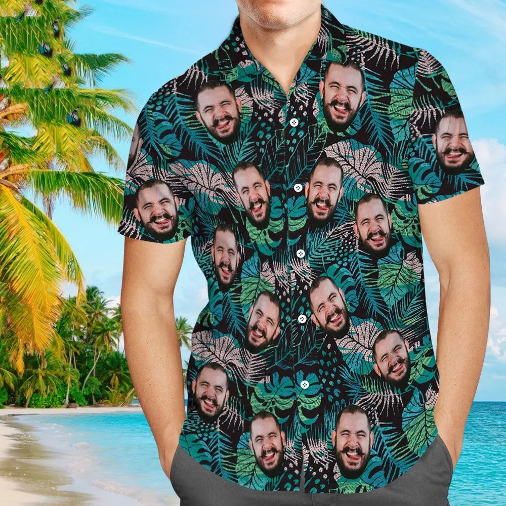 Custom Face Hawaiian Shirt Men's All Over Print Large Leaves Short Sleeve Shirt