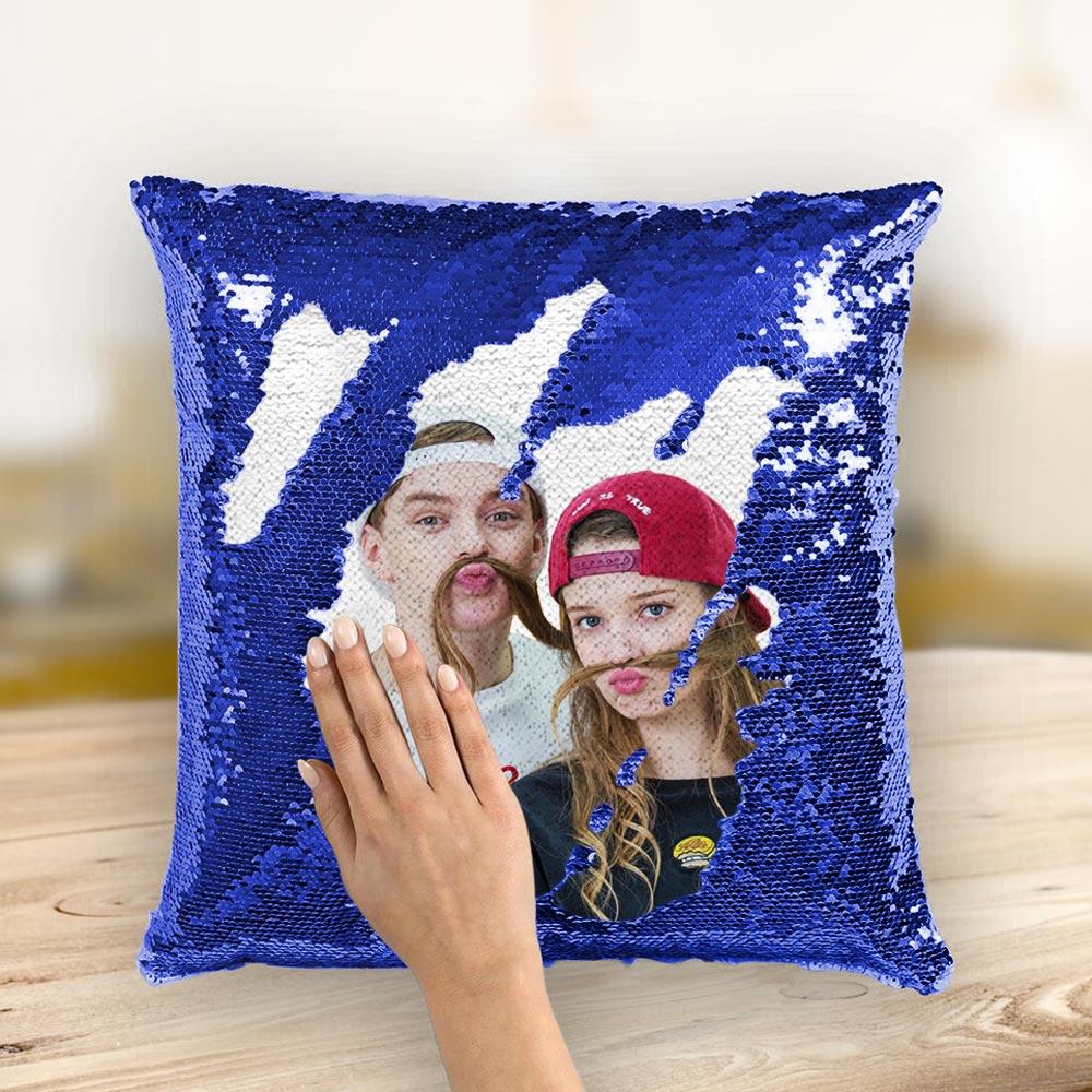 Magic Sequins Pillow - Custom Your Photo - Blue - 15.75in x15.75in