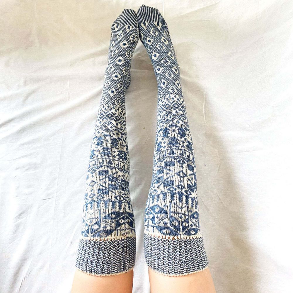 Women'S Winter Leg Warmer With Geometric Pattern Over The Knees