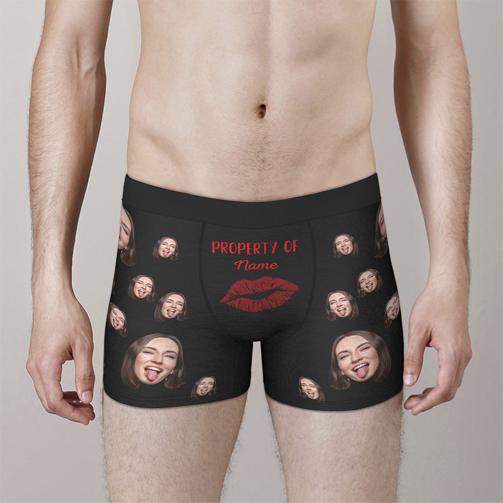 Custom Men's Face Boxer Shorts PROPERTY OF NAME PERSONALIZED NAME BOXERS