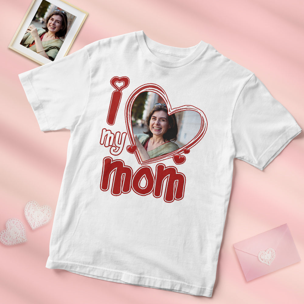 Custom Photo I Love My Mom Shirt Personalized Heart Mother Shirt