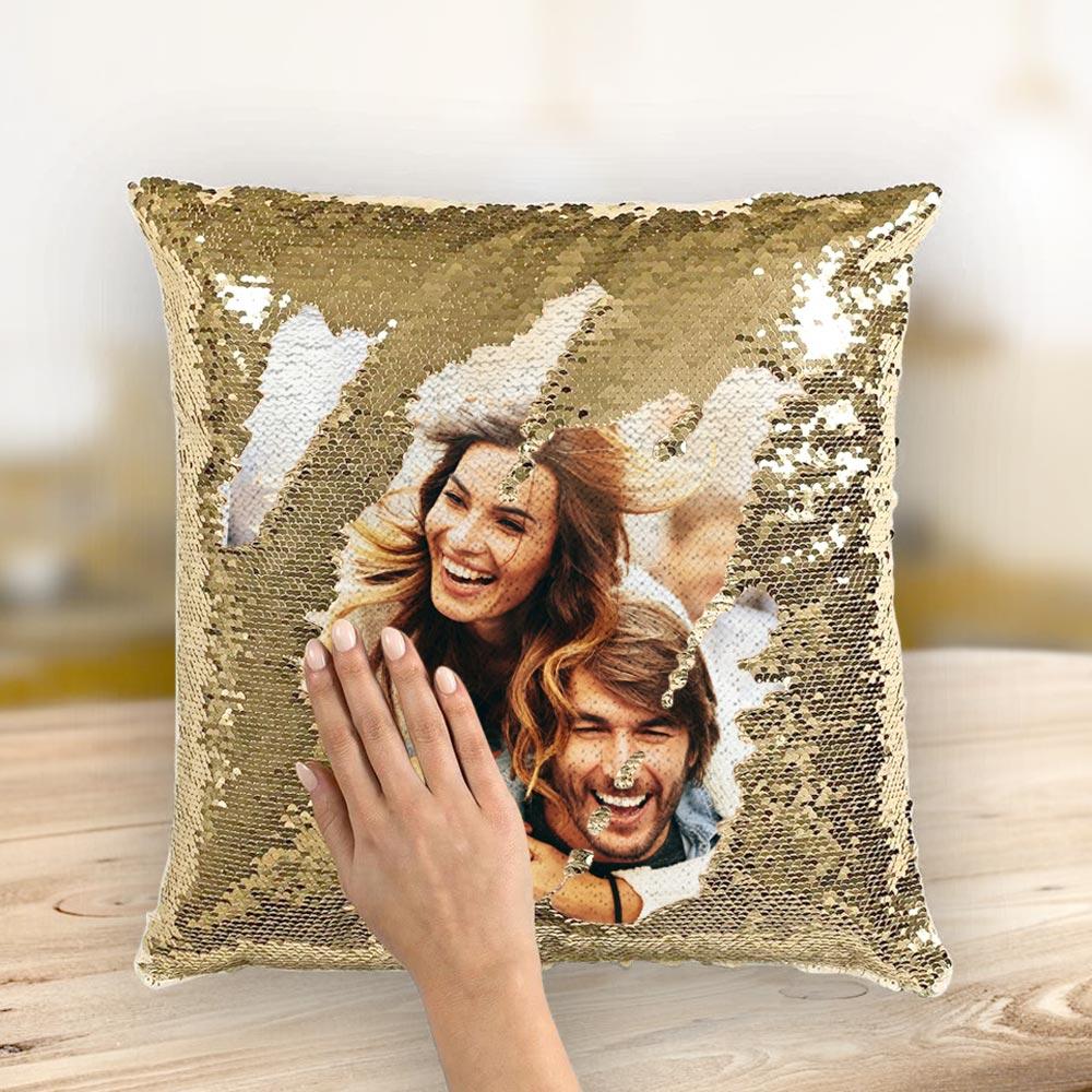 Magic Sequins Pillow - Custom Your Photo - Golden - 15.75in x15.75in