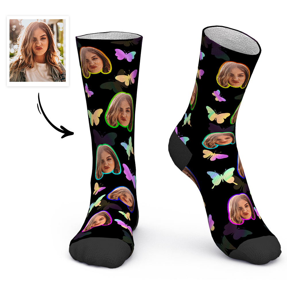 Custom Face Socks Personalized Photo Socks with Text - Colorful Butterfly