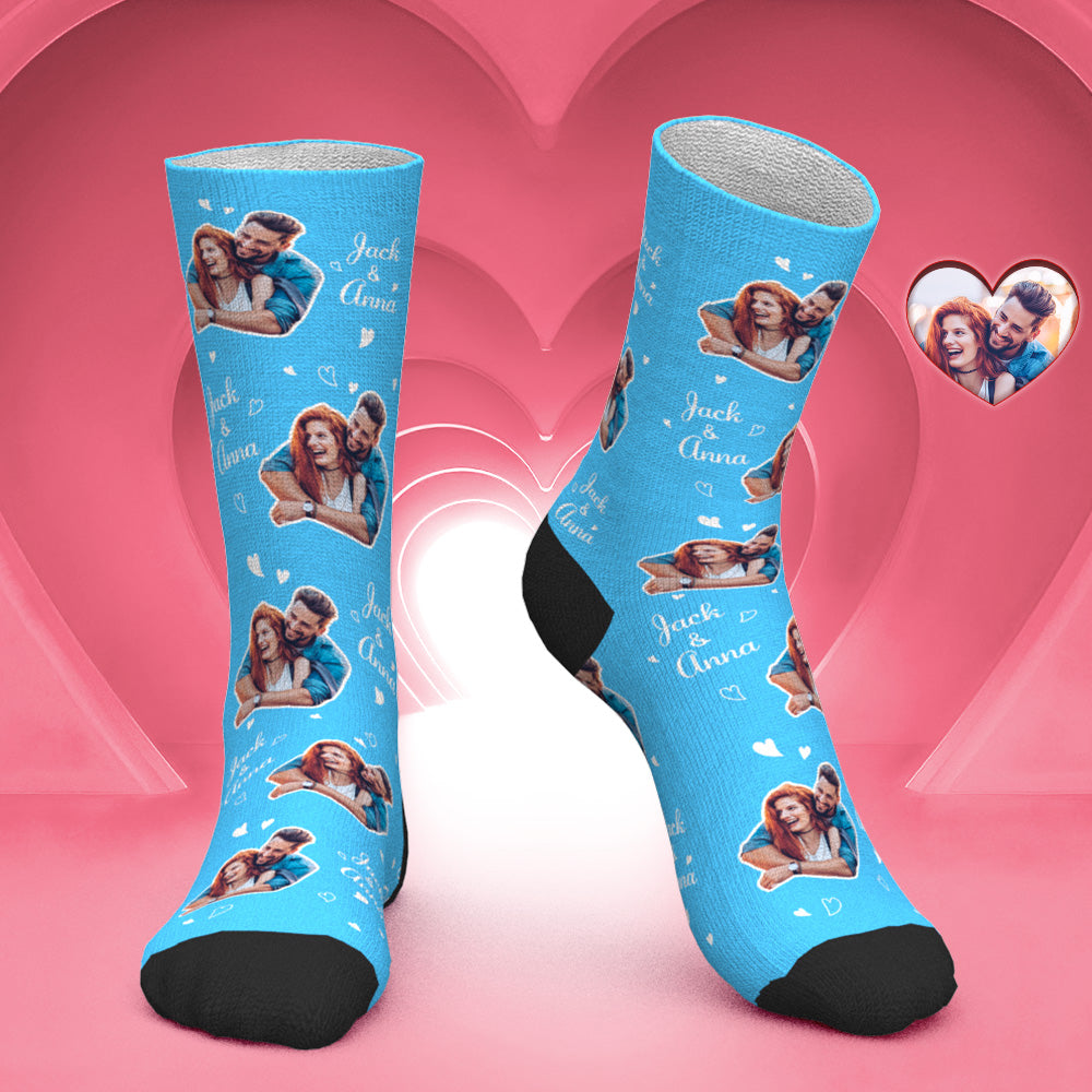 Custom Couple Photo Socks with Name Romantic Valentine Gift