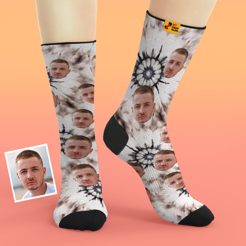 Custom Tie Dye Style Breathable Face Socks Personalized Soft Socks Gifts Ice Dyed