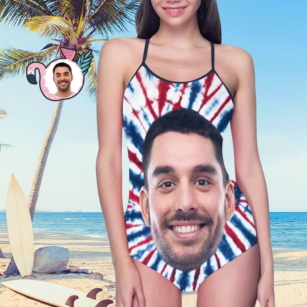Custom Face Swimwear Women's Photo Slip One Piece Swimsuit- Tie Dye USA Flag