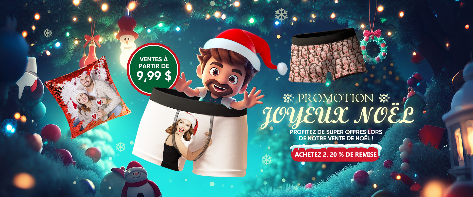 Custom Face Boxer Briefs Personalized Xmas Leds Underwear Christmas Gifts for Him