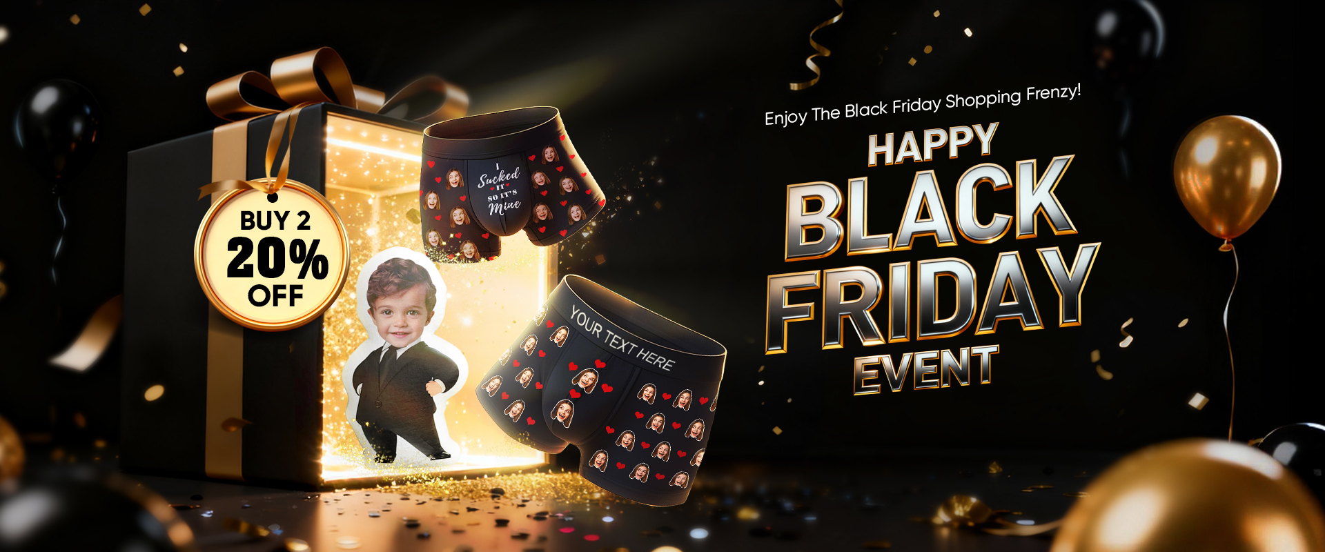 MEN'S CUSTOM FACE ON BODY POPULAR BOXER SHORTS Valentine's Day GIFT FOR HIM Black -