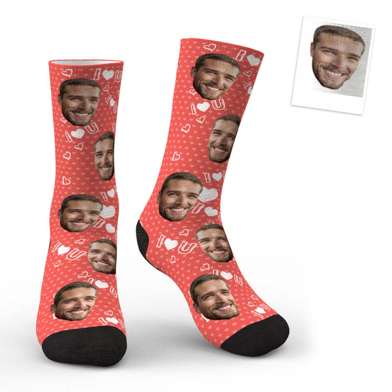 3D Preview Custom Face I Love U Socks - MyPhotoBoxer