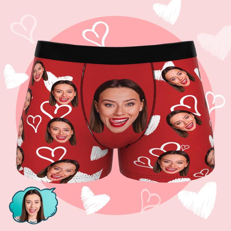 Custom Boxers with Face Briefs for Men-White Heart