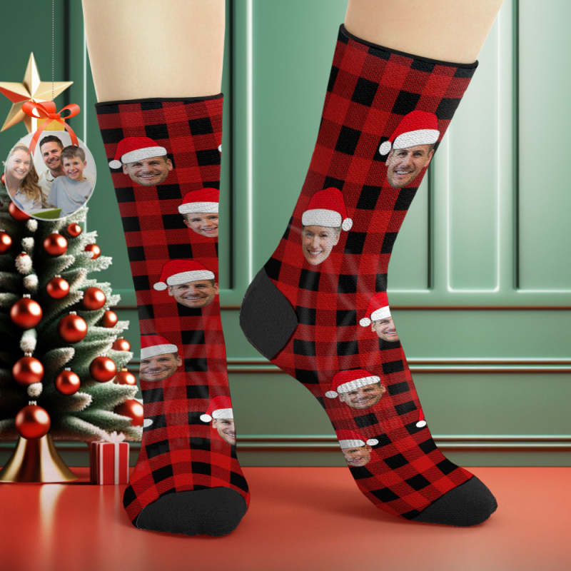Custom Buffalo Plaid Socks Personalized Face Christmas Gifts