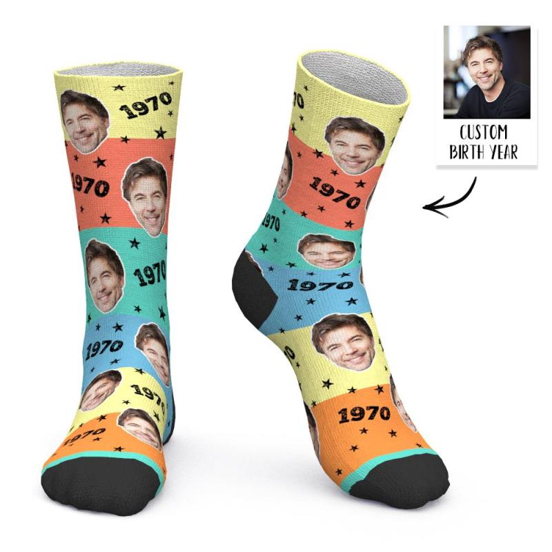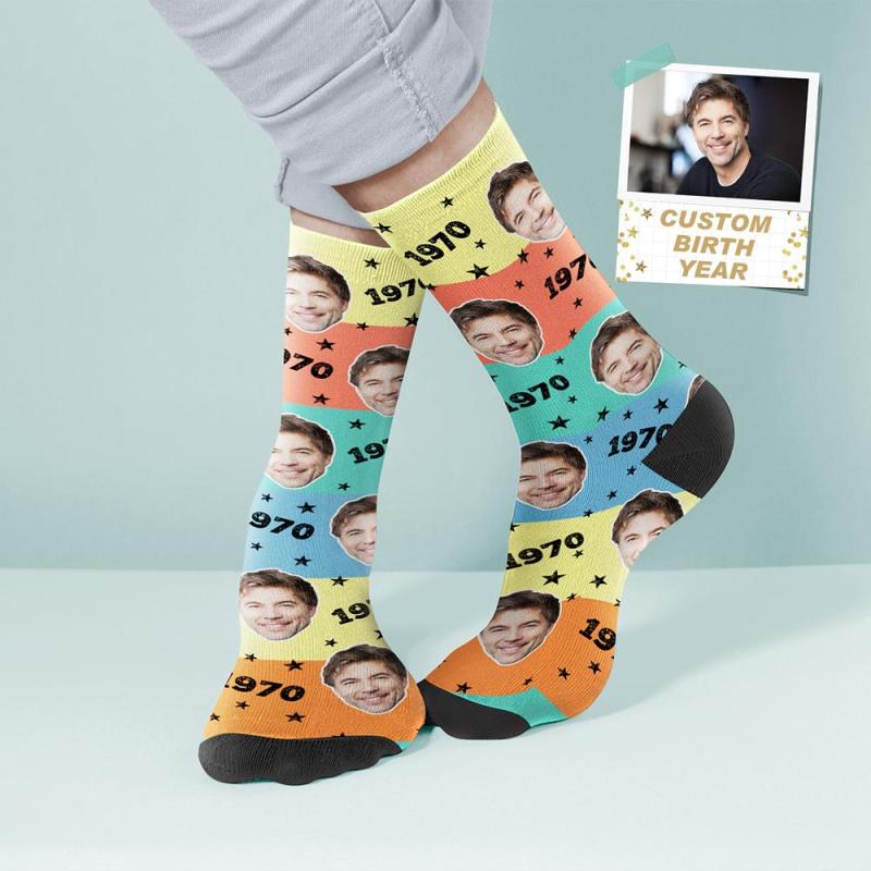 Custom Face and Age Socks Coloful Personalized Birthday Socks Birthday gift
