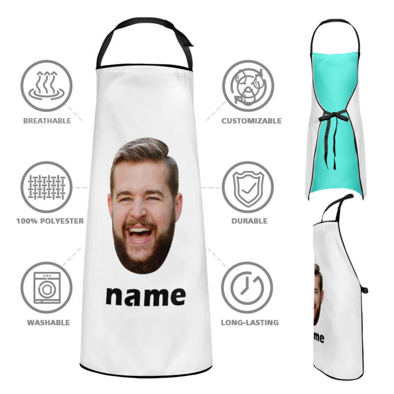 Custom Face And Name Kitchen Apron Personalized Apron For Men Women Chef Cooking Gift