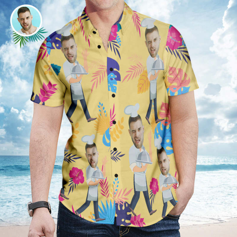 Custom Face And Text Hawaiian Shirt Short Sleeve Shirt Flowers Beach Summer Chef Shirts for Men