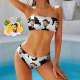 Custom Face Bikini swimming costume Bandeaukini Gift For Her - Cow Print Black and White
