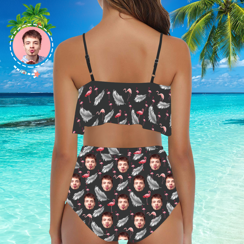 Custom Face Bikini Women's Ruffle Summer Bikini High Waisted Bathing Suits Gift For Her - Feather & Flamingo