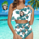 Custom Face Bikini Women's Ruffle Summer Bikini High Waisted Bathing Suits Gift For Her - Large Leaves