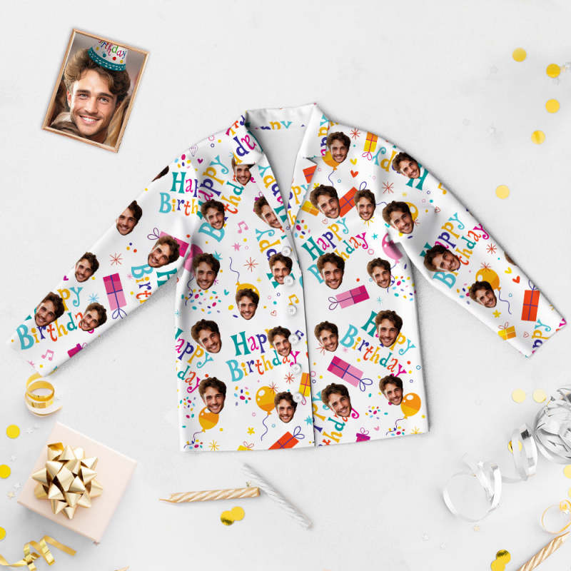 Custom Face Birthday Pajamas Personalized Photo Party Sleepwear Women Men Colorful Pajama Set Happy Birthday