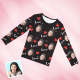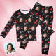 Custom Face Black Pajamas Personalized Round Neck Love Heart Pajamas For Women Valentine's Day Gift