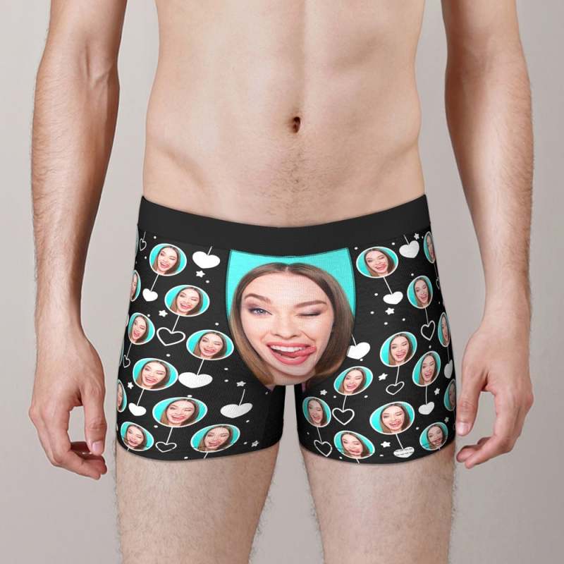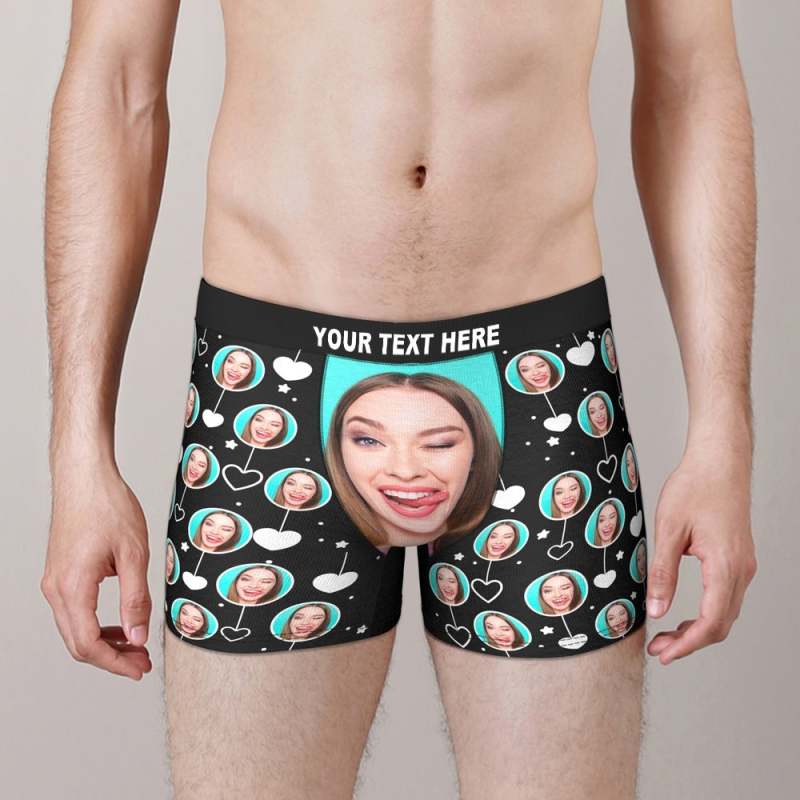 custom face boxer funny face white heart Valentine Day present for him