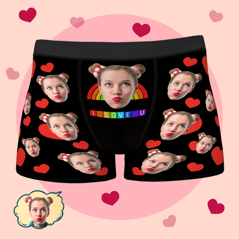 Custom Face Boxer Personalized Men's Photo Boxers I Love You with Rainbow Gifts for Him
