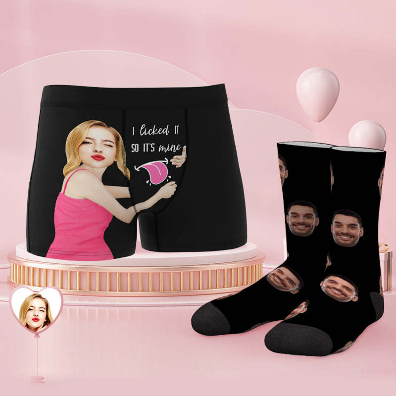 Custom Face Boxer Shorts And Socks Set I Licked It So It's Mine