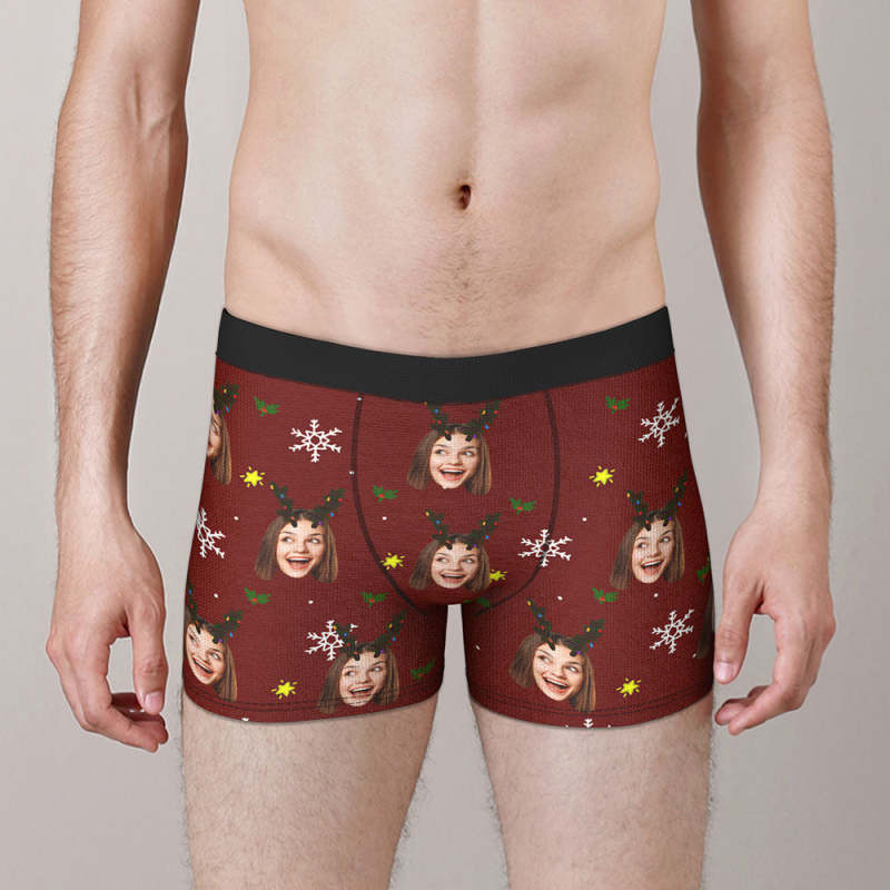 Custom Face Boxers Briefs Personalized Men's Shorts With Photo Snowflake And Antler Christmas Gifts
