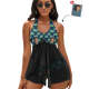 Custom Face Boyfriend Women's Strappy Neck Dress Swimsuit - Leaf