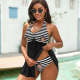 Custom Face Boyfriend Women's Strappy Neck Dress Swimsuit - Stripe