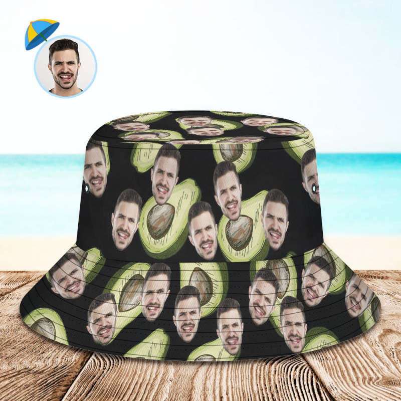 Custom Face Bucket Hat Unisex Personalized Photo Summer Cap Avocado Hiking Beach Hats Gift for Lover