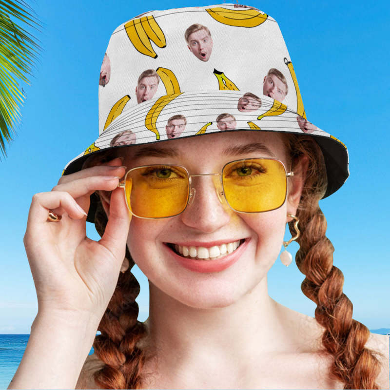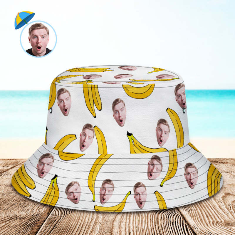Custom Face Bucket Hat Unisex Personalized Photo Summer Cap Banana Hiking Beach Hats Gift for Lover