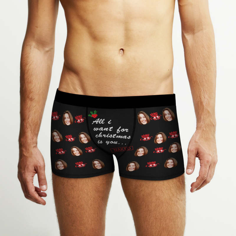 Custom Face Christmas Bells Boxers Briefs Personalized Mens Underwear Funny Briefs With Photo -All i Want for Christmas is You