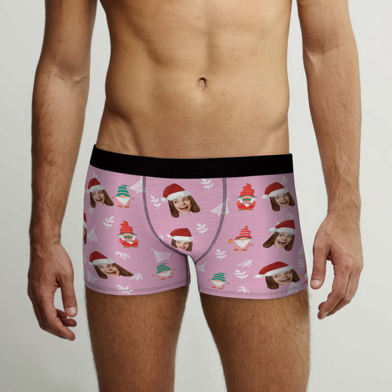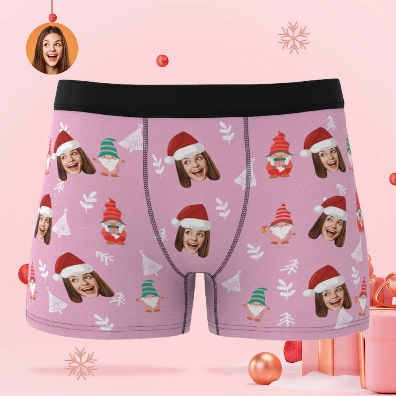 Custom Face Christmas Gnomes Pink Boxer Briefs Personalized Christmas Gift