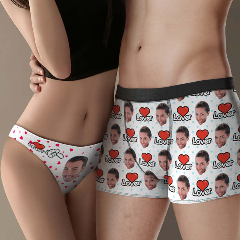 Custom Face Couple Matching Underwear Sweet Lover Personalized Funny Underwear Valentine's Day Gift
