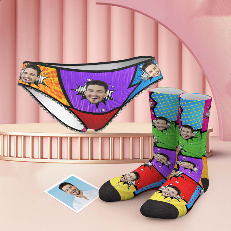 Custom Face Funny Comics Panties And Socks Set