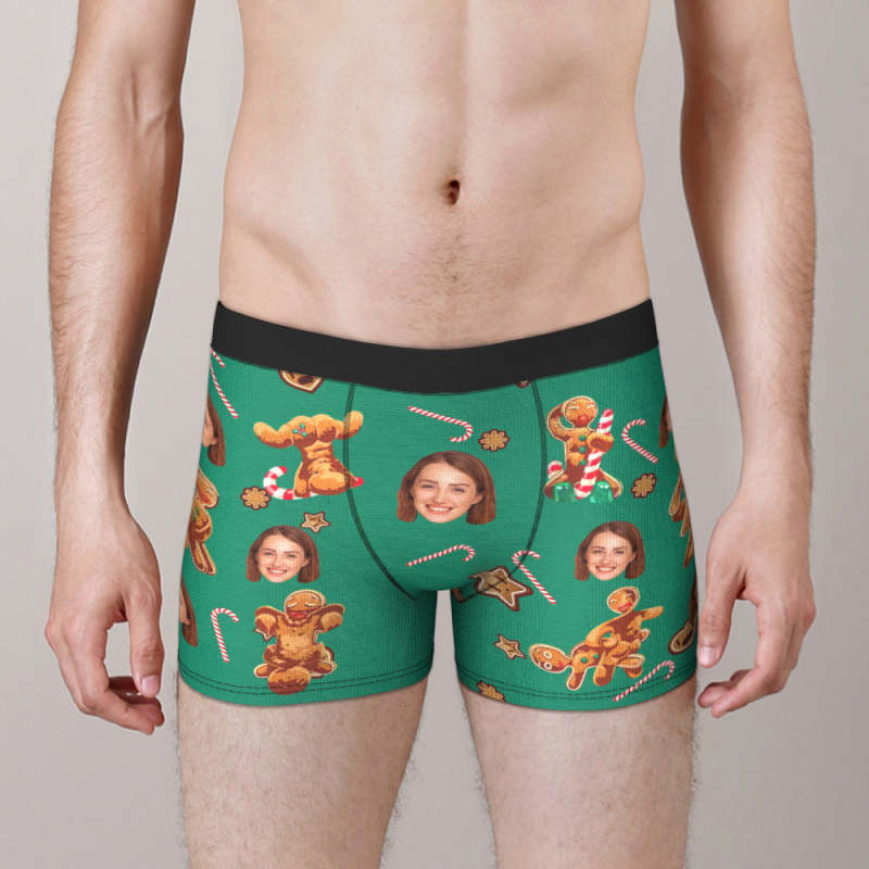 Custom Face Gingerbread Couple Boxer Briefs Funny Personalized Face Underwear Christmas Gift