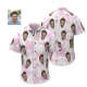 Custom Face Hawaiian Shirt Personalized Men's Photo Shirt Valentine's Day Gift For Him Pink Flower