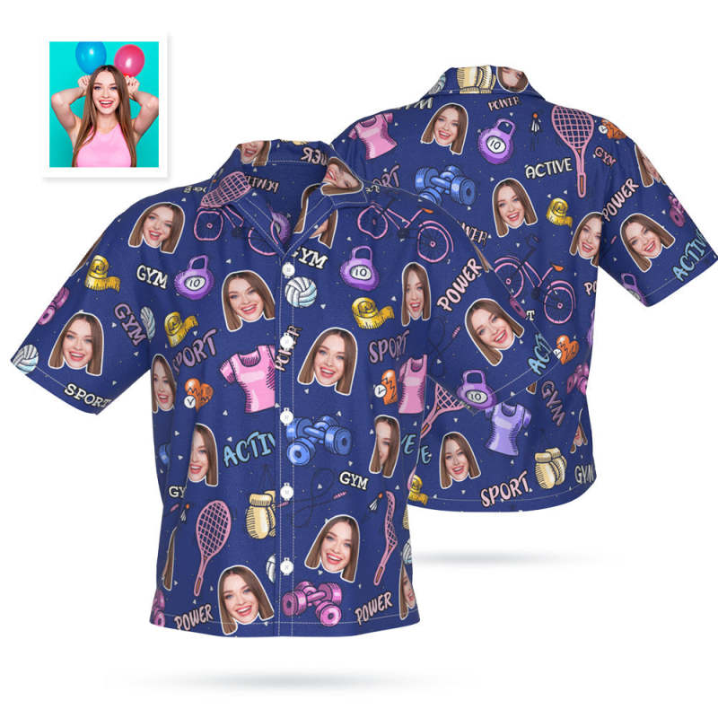 Custom Face Hawaiian Shirt Personalized Photo Gym Girl Summer Shirts for Women