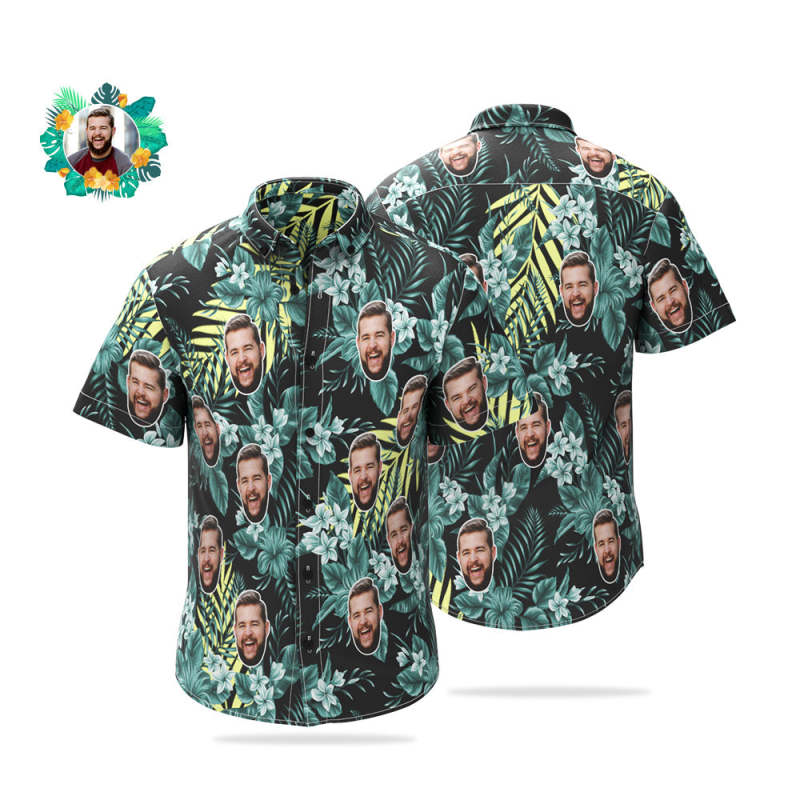 Custom Face Hawaiian Shirt Personalized Photo Summer Shirts for Men - Green Flowers